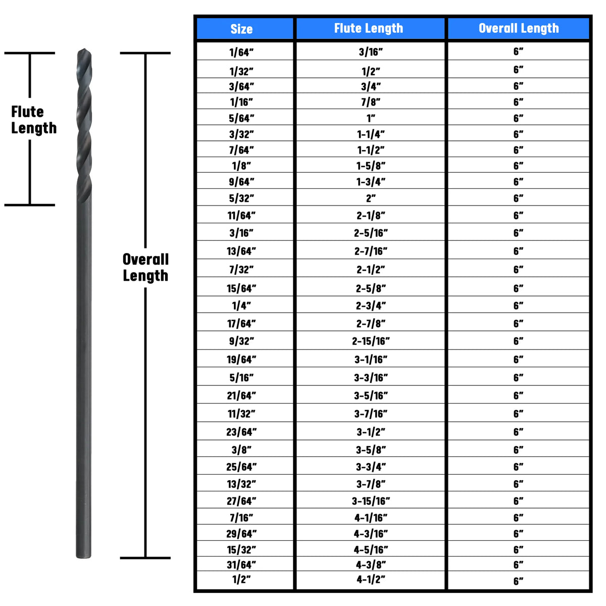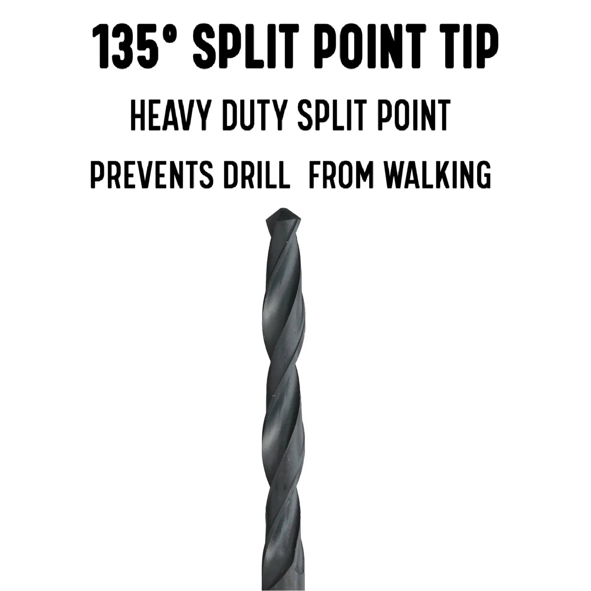A dependable, general purpose high speed steel drill bit ideal for production, maintenance or portable drilling jobs. They are for use in a wide range of materials such as aluminum, brass, copper, metal, plastic and wood. They are surface treated with abrasion-resistant black oxide and made of high speed steel with a 135° split point tip for fast penetration and accurate drilling. Ideal for drilling where extra length for reach is required. Round shank for use in a wide range of tool holding systems
