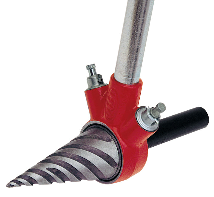 Pipe Reamers are used to deburr steel pipe before threading. The pipe reaming cone is made from tool steel and hardened for maximum life. Unique cutting edge makes this spiral pipe reamer self-feeding and easy to start and operate. Double pawl ratchets allow half the rotation to engage the teeth. The two pawls work to alternately engage the ratchet teeth and apply force, for optimal pipe reaming. There are thirteen teeth, equally spaced for best tooth engagement. This manual pipe reamer tool requires less work for faster results in pipe reaming.